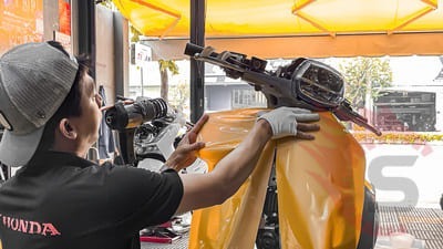 2. Đo – cắt film TPU chính xác: Tùy vào từng dòng xe (Vespa, SH, Vision, Vario, ST125, v.v.), xưởng cắt film bằng máy plotter để chuẩn từng chi tiết.