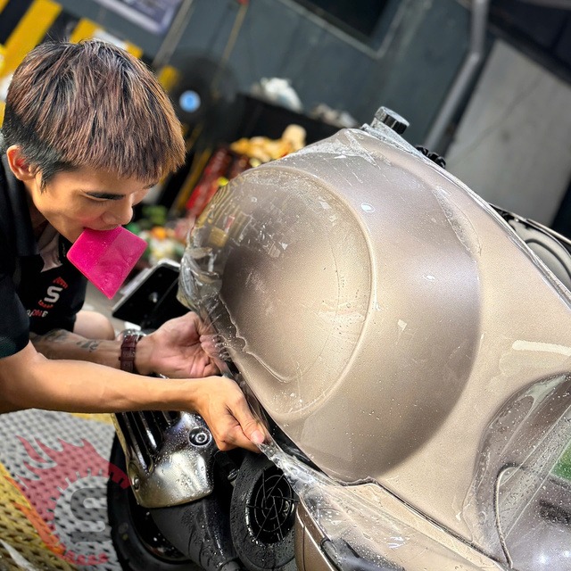 Thợ có kinh nghiệm hơn 5 năm trong dán PPF cho xe cao cấp như Vespa, SH, BMW, Harley… đảm bảo độ chính xác tuyệt đối – không bụi, không bong mép, không ố keo.
