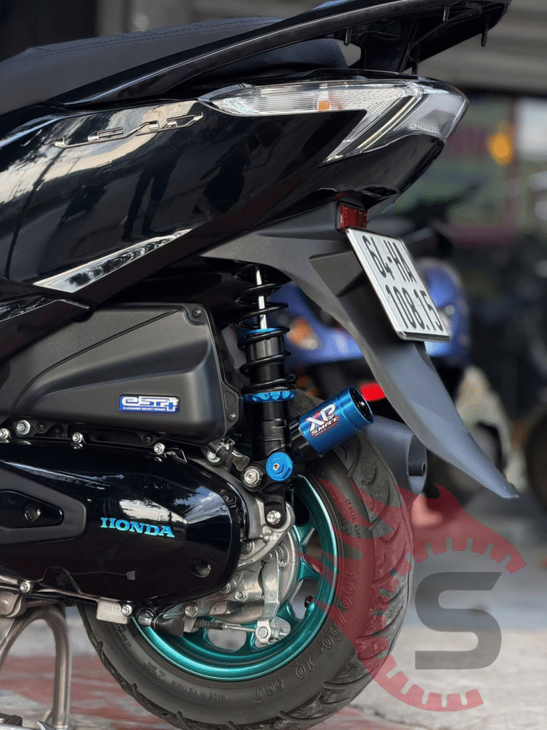 Cấu trúc thiết kế của các dòng xe tay ga như Honda Vario, Click, Vision, hay Scoopy đều chỉ sử dụng 1 phuộc nhún đặt lệch một bên. Thiết kế này tuy giúp xe gọn gàng, giảm trọng lượng, nhưng lại tạo ra áp lực vô cùng lớn lên hệ thống treo. Lực tải không phân bổ đều khiến phuộc zin rất nhanh bị “xì dầu”, mất đi độ đàn hồi.