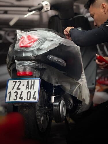 “Mình dán cho chiếc SH350i, nhìn bóng hơn cả sơn gốc, rửa xe cực kỳ dễ.”
