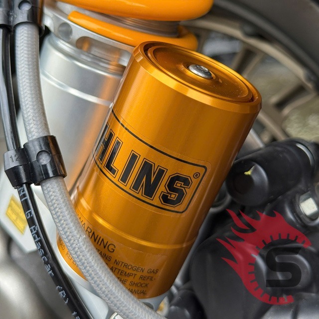 Phuộc Ohlins có cấu tạo pít-tông và dầu thủy lực cao cấp giúp ổn định thân xe, giảm chấn mượt và không bật lực.
