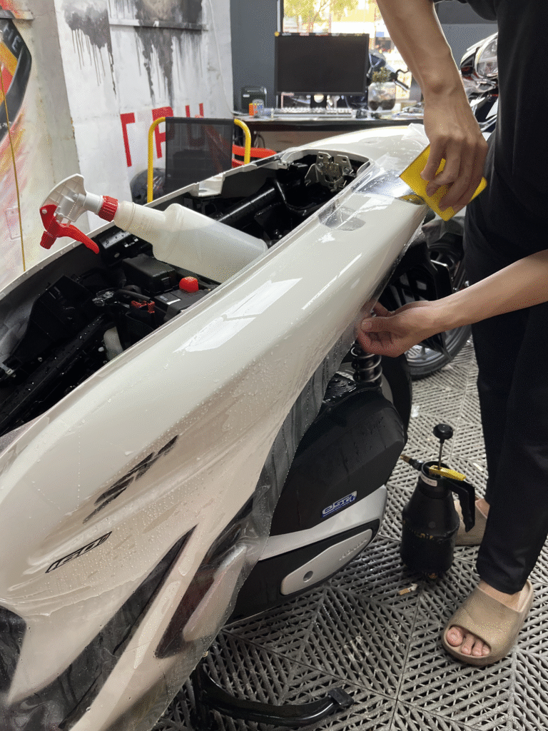 Rất nhiều khách hàng đi xe Vario 160 đen nhám hoặc SH 350i xám xi măng nhám bị các thợ thiếu kinh nghiệm tư vấn dán keo trong bóng. Hậu quả là chiếc xe trông rất lởm chởm và mất giá trị. Hãy luôn chọn đúng bề mặt màng phim bảo vệ. Tham khảo thêm về cách chăm sóc sơn nhám tại: Saigondoxe.vn