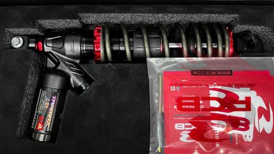 Phuộc được phủ sơn tĩnh điện bóng mờ, chống trầy và chống phai màu cực tốt. Bình dầu rời được hoàn thiện tỉ mỉ, khắc laser logo RCB, vừa tinh tế vừa thể hiện chất “độ” rõ rệt.