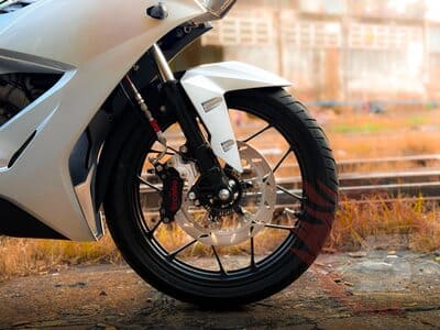 Không chỉ phuộc và phanh, Winner X độ tại đây còn thường được nâng cấp mâm CNC Racing Boy, vỏ Michelin hoặc Pirelli, cổ pô Titan và pô 4Road, tạo nên tổng thể dàn chân vững chắc, bám đường cực tốt.