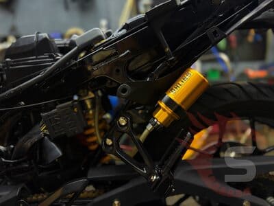 Một trong những hạng mục nâng cấp đầu tiên và phổ biến nhất trên Winner X chính là phuộc sau Ohlins. Dòng phuộc danh tiếng đến từ Thụy Điển này được chế tạo từ nhôm CNC nguyên khối, có bình dầu rời và khả năng tùy chỉnh độ nén – hồi cực kỳ chính xác.